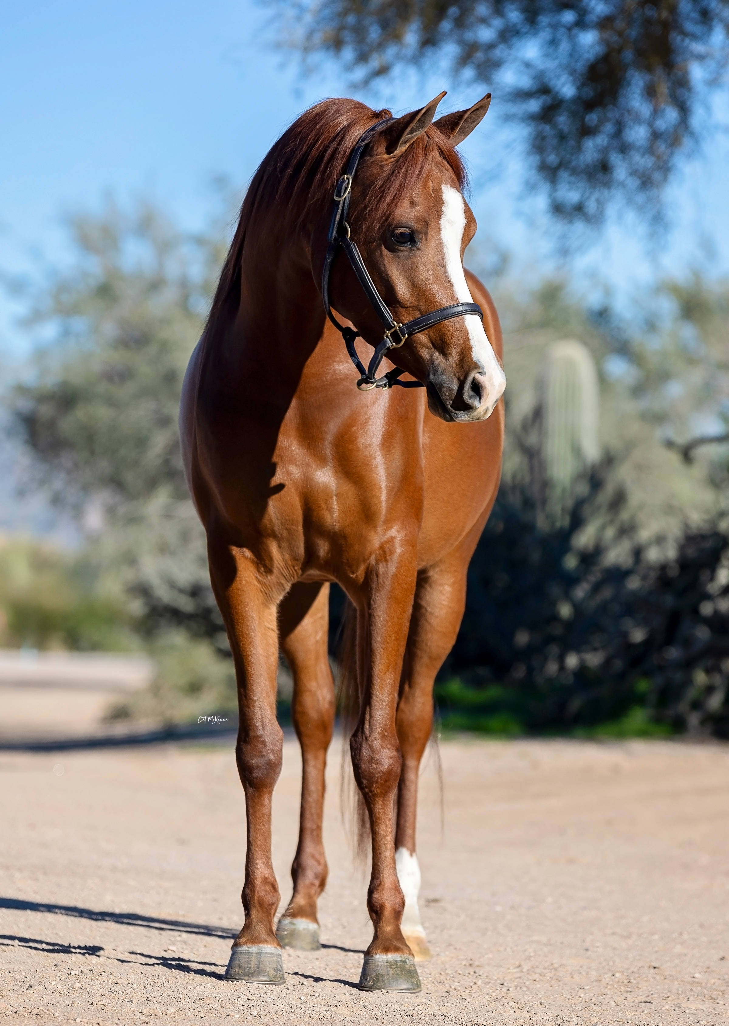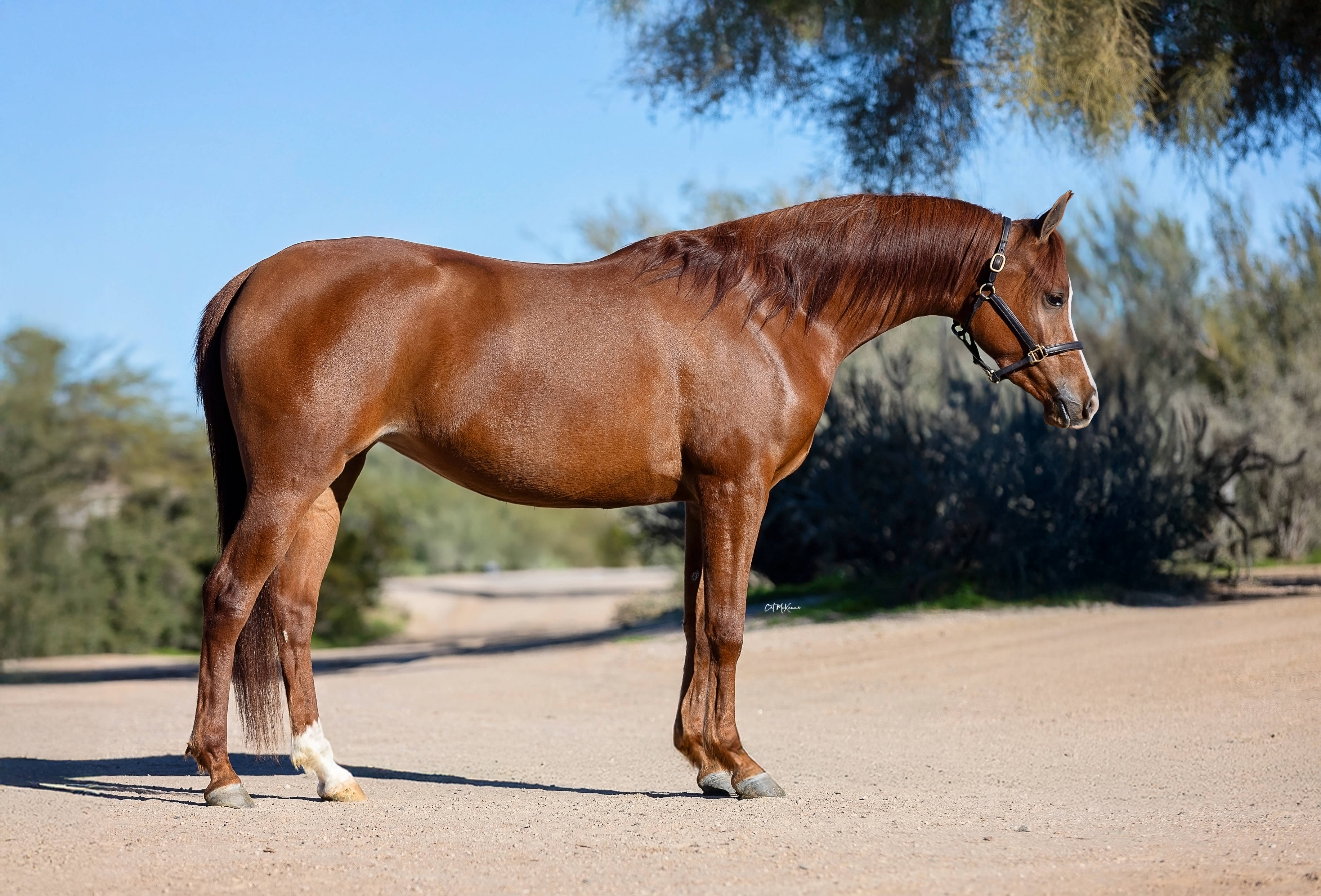Kharouselle V is an exceptionally exquisite and athletic filly sired by National and Regional Hunter Pleasure and Halter champion Lightning Strike V and out of the outstanding mare Khatarina Jullyen V, a full sister to many-time National champion open and amateur Western Pleasure stallion Karmel El Jullyen V. Lightning Strike V represents the classic Varian combination of Audacious PS and the Varian lines embodied in the Country English mare Lalique V (Desperado V x La Kelila). Kharouselle’s dam Khatarina Jullyen V is by the illustrious Jullyen El Jamaal and out of U.S. National Western Pleasure Futurity Champion Desperado V daughter Khantina Girl V.
